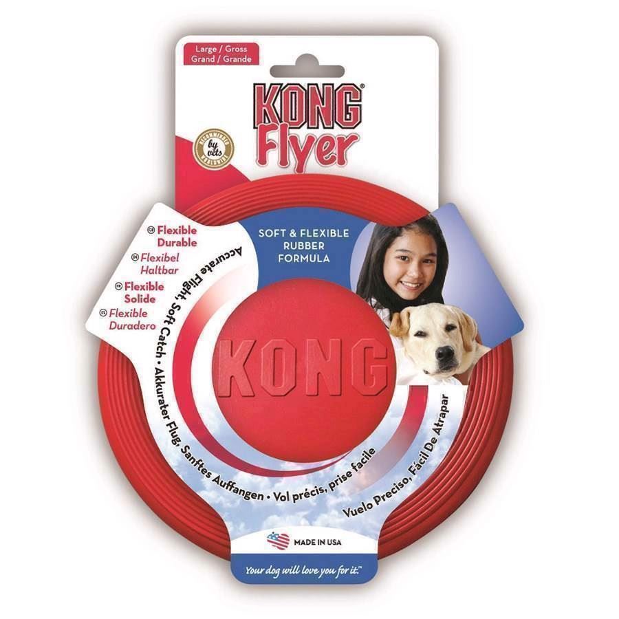 Vores hundelegetøjs agent har fundet Kong Flyer Frisbee fra Kong hos mypets i kategorien . KONG Flyer er produceret i et blødt og fleksibelt gummi, der gør det nemt for hunden at samle frisbeeen op. Det traditionelle KONG naturgummi er meget holdbart og samtidig sikkert for mund og tænder. Vigtigt: KONG Flyer er ikke et tyggeprodukt og bør kun
